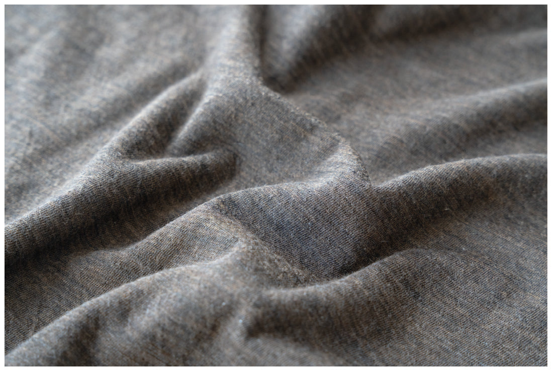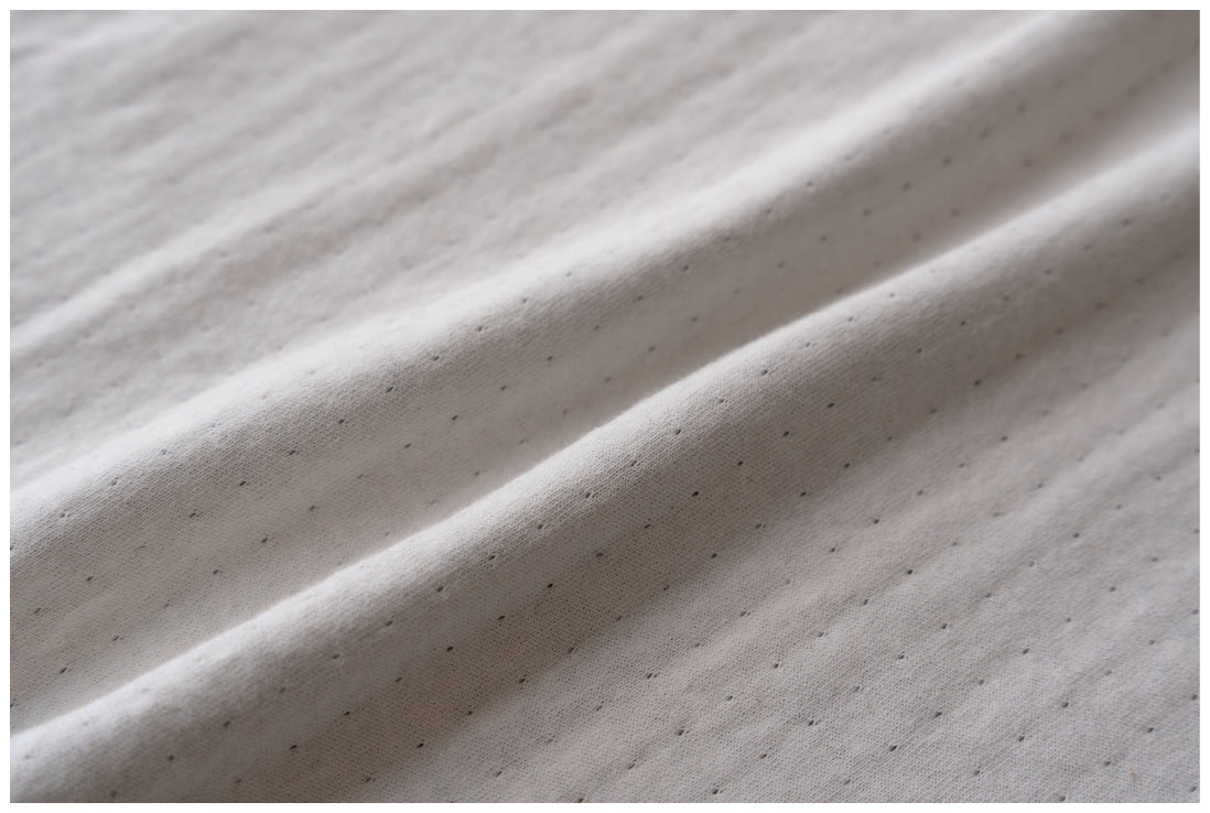 肌ざわりの不快感を軽減するため、やわらかなウールとコットンを重ね合わせた生地を使っています。