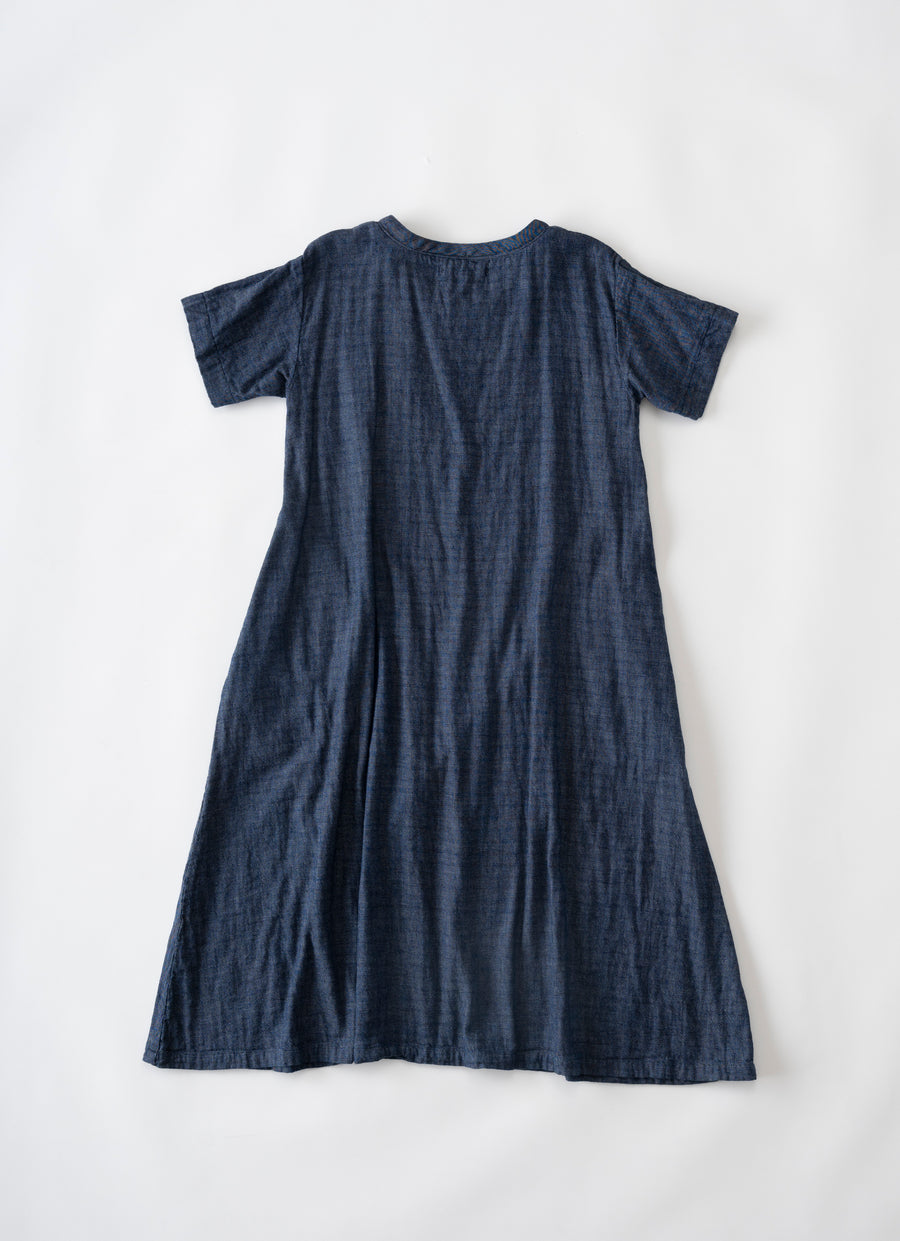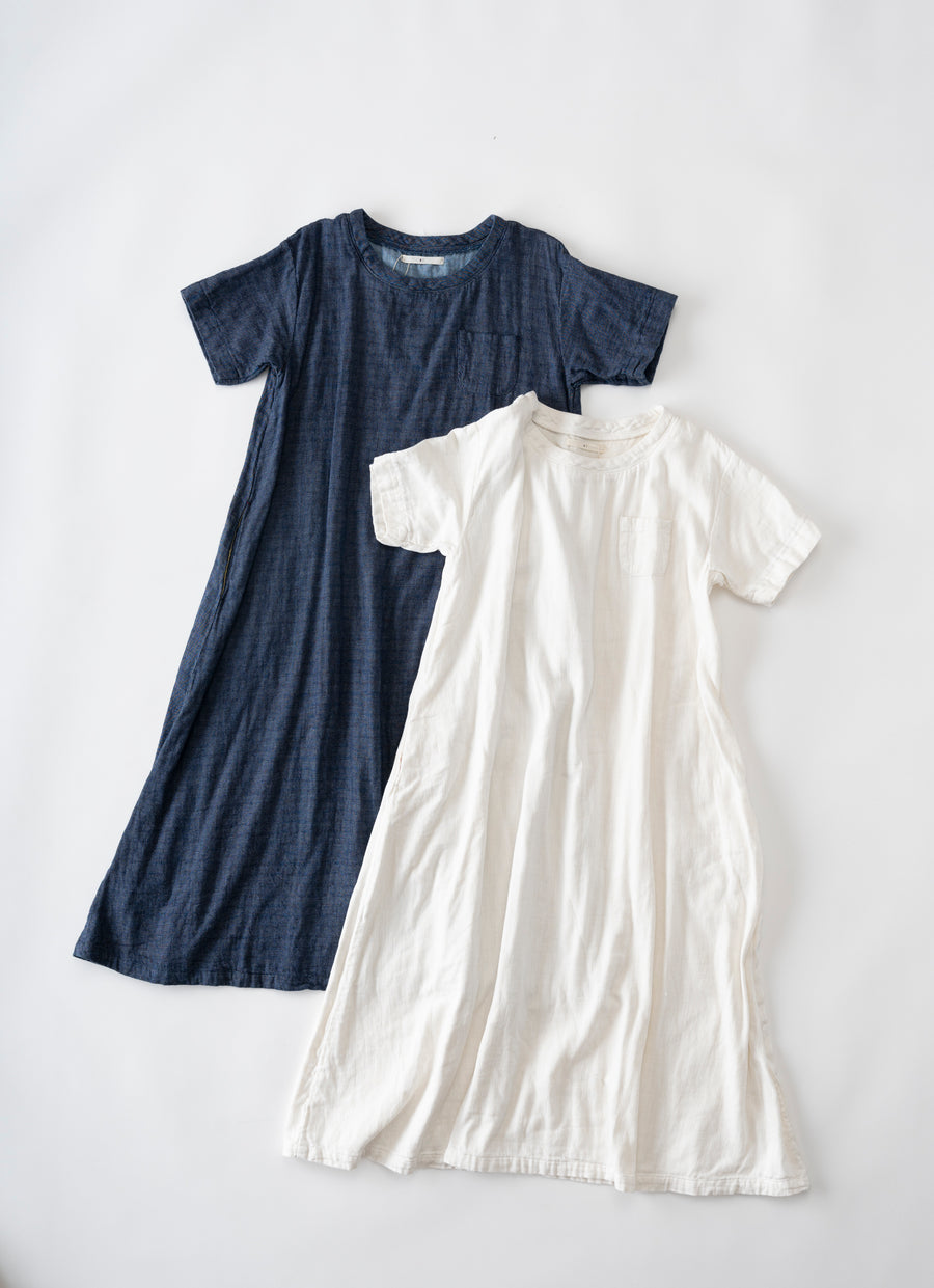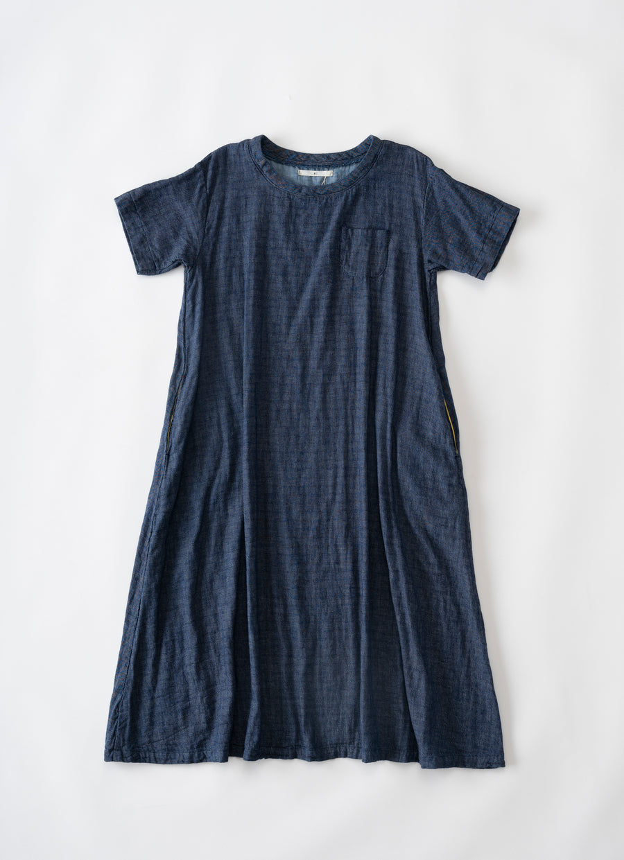 洗いざらしがよく似合う、さわやかなデニムガーゼの半袖ワンピース。