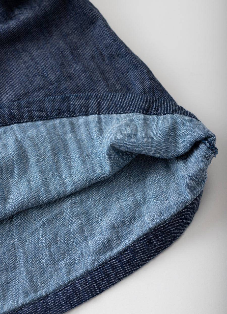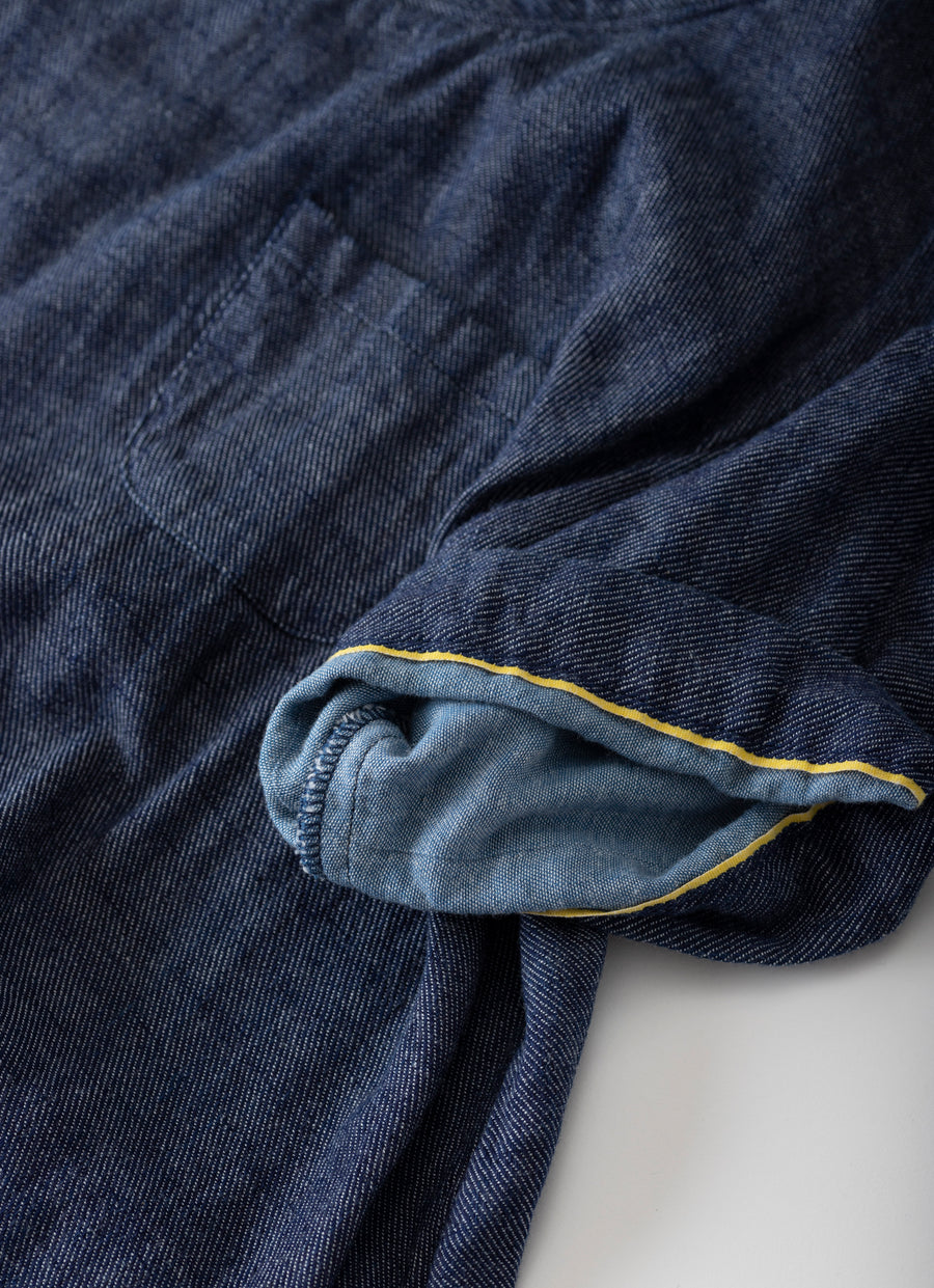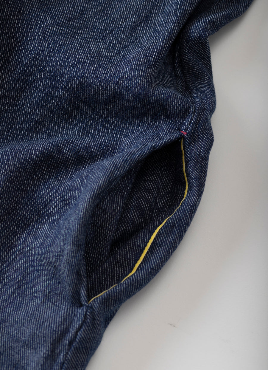 さわやかなホワイトデニムと、カジュアルに着たいダークデニムの2色展開。袖口を返すと、セルビッチ(ホワイトデニムは赤、ダークデニムはイエロー)が見え隠れ。両脇に付けた便利なポケットにも耳がちらりとのぞきます。ラフに一枚で着て元気に出掛けたい。